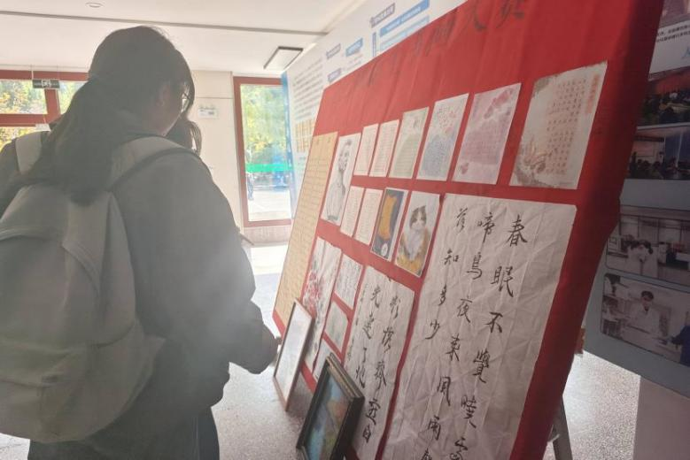 新生利用课余时间创作,以对美学的热爱投入创作,将自身对美学的理解融入作品,经评选,部分优秀作品在学院内进行展出。作品展出后,同学们纷纷走向展板,认真浏览每一幅作品,现场氛围热闹有序。