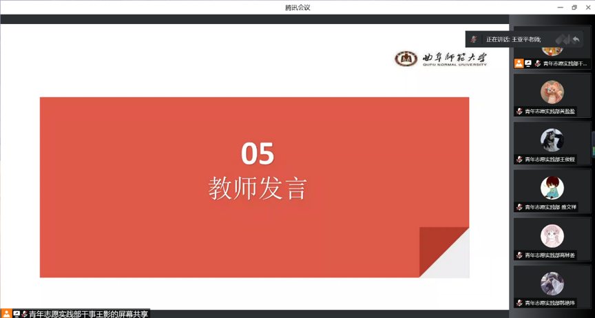 召开2022年暑期大学生社会实践线上动员大会。学院团委书记王亚平出席本次会议。会议面向各社会实践队队长及青年志愿实践部全体成员召开。本次会议由青年志愿实践部干事王影主持。