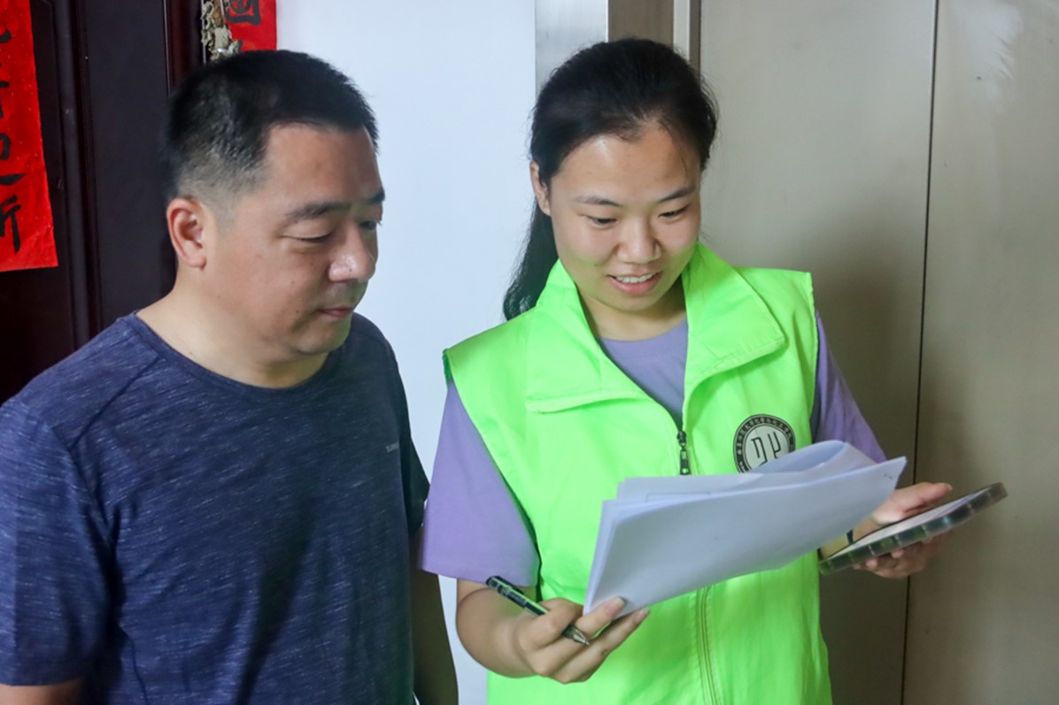 图为志愿者核对住户信息