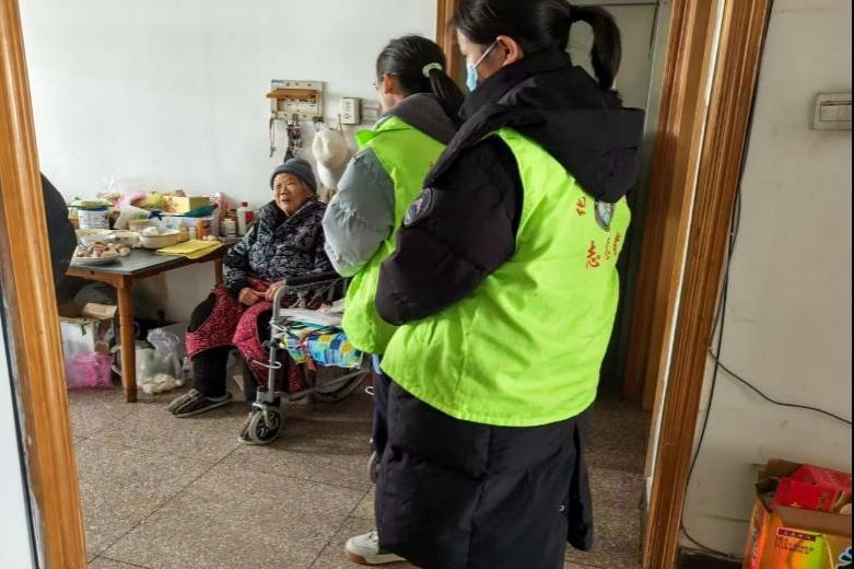 图为志愿者慰问老人