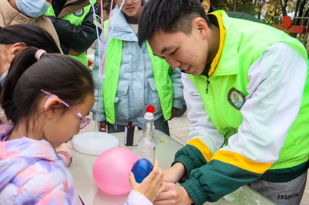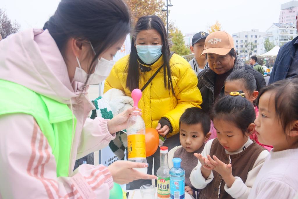 活动中,志愿者向居民演示了有趣的化学小实验并协助小朋友们体验了实验过程:“火山爆发”实验,瞬间点燃了小朋友们的热情;变色反应,引起了小朋友们惊奇的讨论;“气球长大了”实验,在小朋友们心中种下了探索化学奥秘的种子。此外,志愿者还结合展板知识和实验现象,耐心地解释了酸碱中和、氧化还原等化学名词,并向他们科普了日常生活中常用的化学知识。志愿者们通过实践性的教学方式与现场观众积极互动,寓教于乐,收获了家长与小朋友们的一致好评。