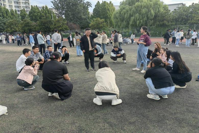 2024级全体同学到达西操场后,由志愿者分组带领同学们进行团辅活动,活动过程中,志愿者带领同学们进行了多种小游戏,操场上充满了同学们的欢声笑语。