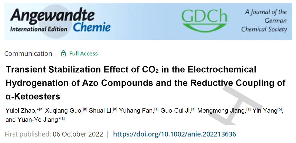 赵育磊副教授与蒋原野副教授合作,在二氧化碳利用领域取得突破性进展,相关研究成果发表在国际顶级期刊《德国应用化学》(Angewandte Chemie International Edition)上,论文题为“Transient Stabilization Effect of CO2 in the Electrochemical Hydrogenation of Azo Compounds and the Reductive Coupling of α-Ketoesters” (DOI: 10.1002/anie.202213636,文章链接://onlinelibrary.wiley.com/doi/10.1002/anie.202213636)。ACG漫画网