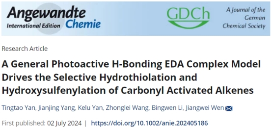 文江伟副教授团队在H-键-S-EDA光化学领域取得突破性进展,相关研究成果发表在国际顶级期刊《德国应用化学》(Angewandte Chemie International Edition)上,论文题为“A General Photoactive H-Bonding EDA Complex Model Drives the Selective Hydrothiolation and Hydroxysulfenylation of Carbonyl Activated Alkenes”,文章链接://onlinelibrary.wiley.com/doi/10.1002/anie.202405186。ACG漫画网