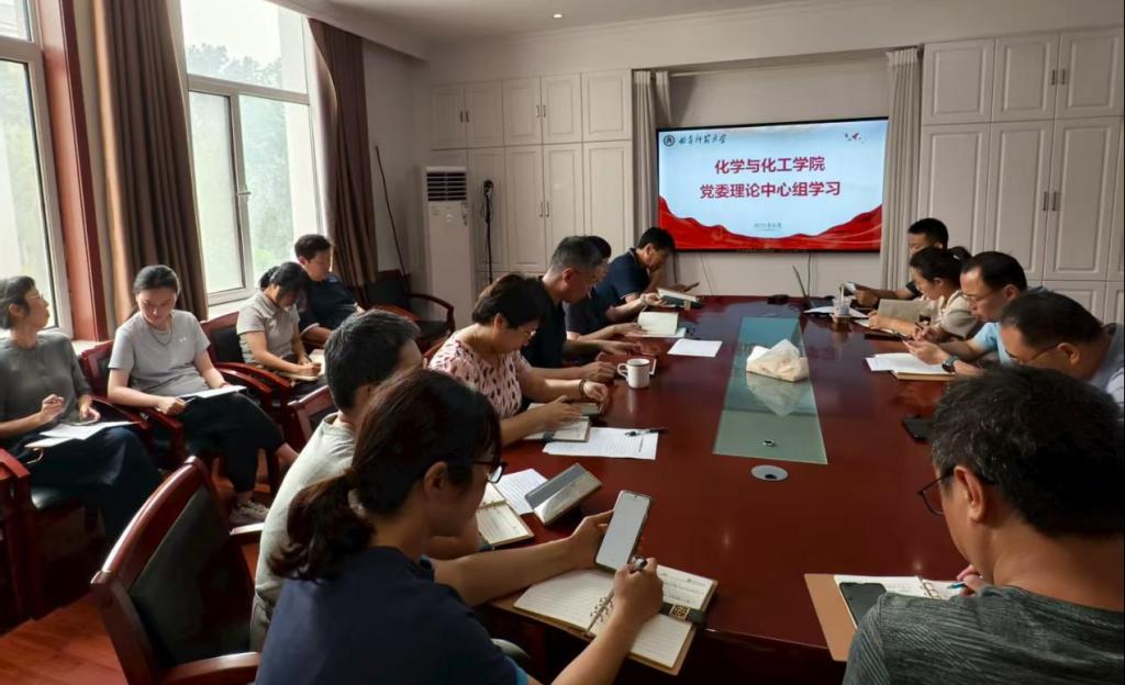 党委理论学习中心组在化学院209会议室举行了党委理论学习中心组2025年度第九次集中学习研讨。本次学习的主要内容是:《习近平在中央城市工作会议发表的重要讲话》和《习近平:做一个堂堂正正、光荣自豪的中国人》。会议由学院党委书记赵琪主持,党委理论学习中心组成员参加。