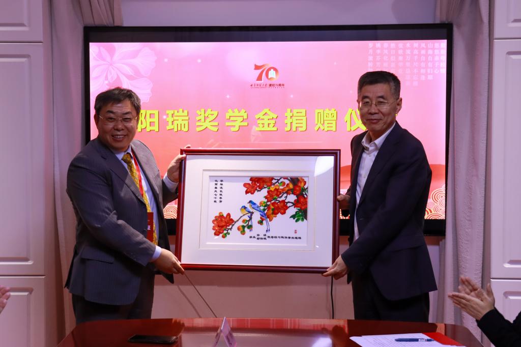院长冯媛媛向孙波颁发捐赠证书,证书上的每一个字迹都凝聚着师生对校友反哺母校善举的敬意。